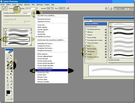 – avec les variations de bruit, bord humide, aérographe, etc.. de la fenêtre Formes,