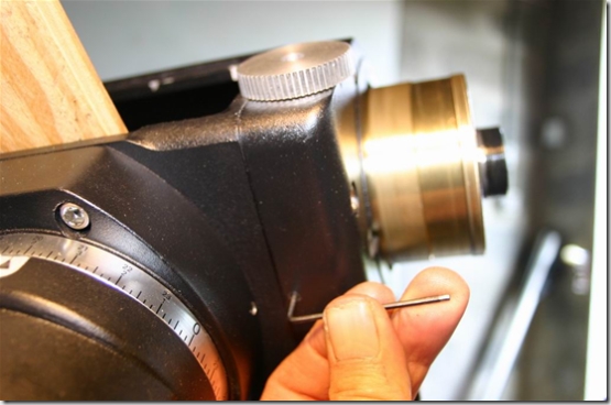 1 – Désserrer les 3 vis qui fixent le support de queue d’aronde. Il faut sortir franchement les vis
