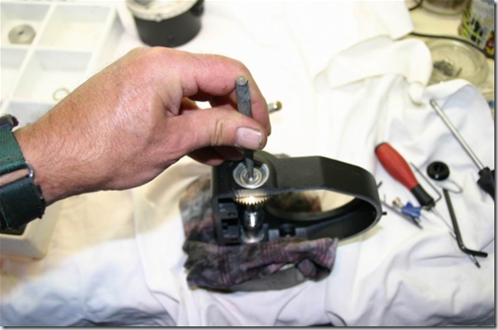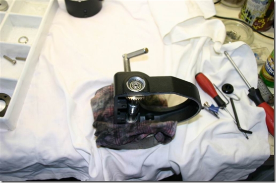 11 – Voici l’état de la monture à ce moment. la pièce en bronze comprend la roue tangente.