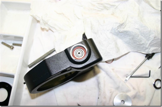 22 – Si vous voulez sortir l’axe complet il faudra d’abord démonter la partie arrière noire: 3 vis à allen de blocage et dévisser ce bloc ( il est vissé sur l’axe) . Puis utilisez soit le maillet soit une cale en bois et un marteau. En frappant sur la partie avant l’axe sortira à l’arrière. L’usinage est parfait donc légèrement serré.