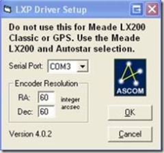 – utiliser le protocole LX200 mais avec la case « Utiliser les commandes LX200 » décochée