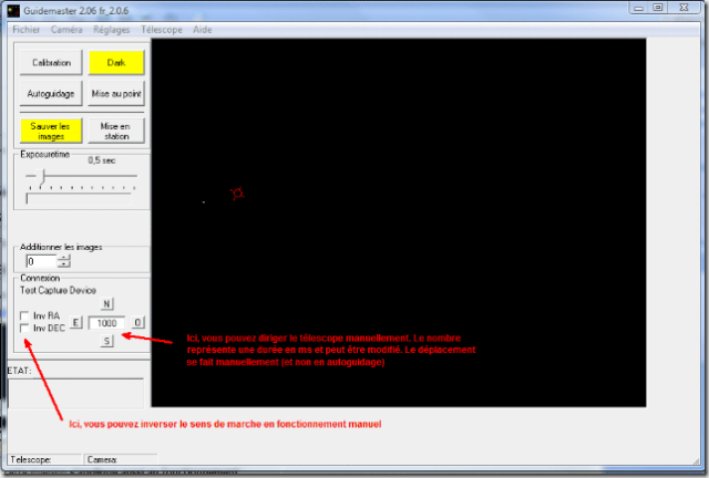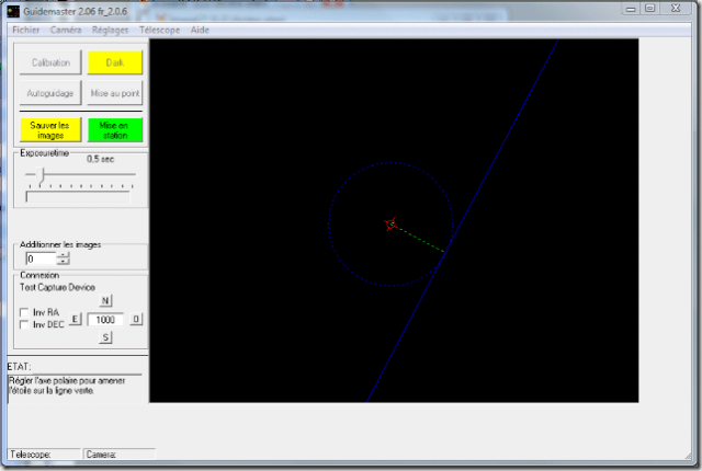 Si le logiciel ne ramène pas tout de suite l’étoile en DEC, attendre un peu, il est peut-être en train d’avaler le jeu.