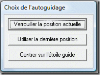 Lors d’un passage de nuage devant l’étoile guide, le programme continue à envoyer des impulsions de guidage à la monture et pert l’étoile.. Es que la dernière version de Guidemaster permettrai de bloquer momentanément le guidage puis la reprise de l’autoguidage afin de réaliser de longue pose toute une nuit par exemple.