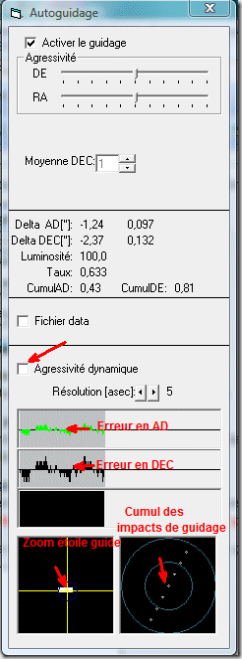 – agressivité dynamique ON (attention elle se remet à OFF quand on arrête l’autoguidage)