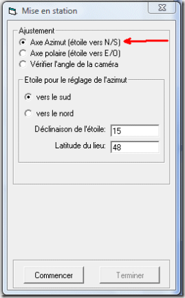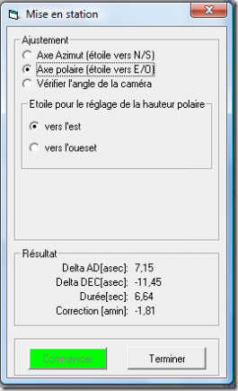 Avec cette fonction il est possible d’ajuster la mise en station de la monture (en altitude et en déclinaison) en quelques minutes.