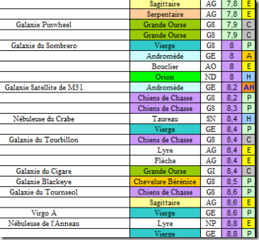 2 fichiers Excel - visibles au jumelles - Messier par magnitude (311 téléchargements )