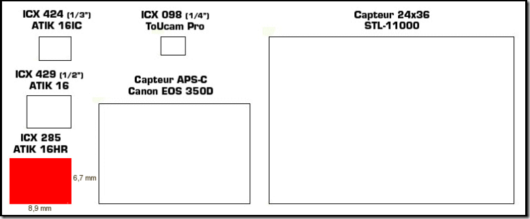 Taille capteur : 8,97mm x 6.7mm (10.2 mm × 8.3 mm avec les pixels ne servant pas à l'image)