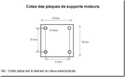 - Les moteurs possèdent un bosselage autour de l’axe de 22mm. Les petites plaques serviront à surélever les moteurs de manière à garder une surface de contact moteur/plaque de soutien le plus large possible.
