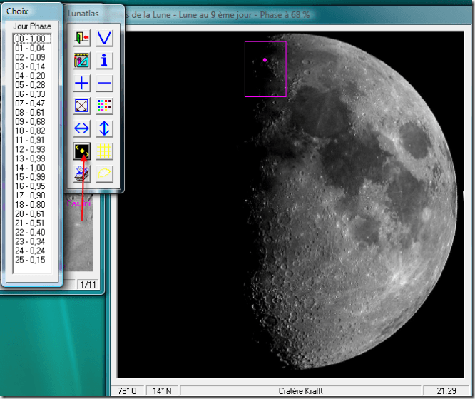 Ce logiciel est un atlas photographique de la lune construit à partir de photographies CCD webcam.