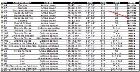 Sur ces 8 pages se trouvent tous les objets Messier classés par nom, magnitude, constellation et mois d’observation.