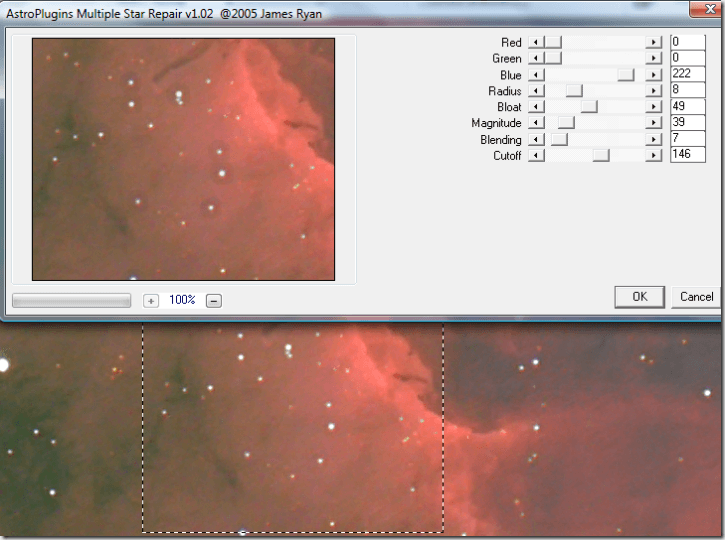 Plugin intéressant car il permet de corriger localement la forme des étoiles pour les arrondir. Utile en cas de filé d’étoiles.