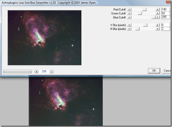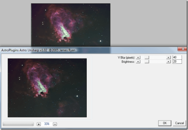 Celui-ci permet d’accentuer les détails des nébuleuses. Le plugin est basé sur la technique de Jerry Lodriguss décrite ICI