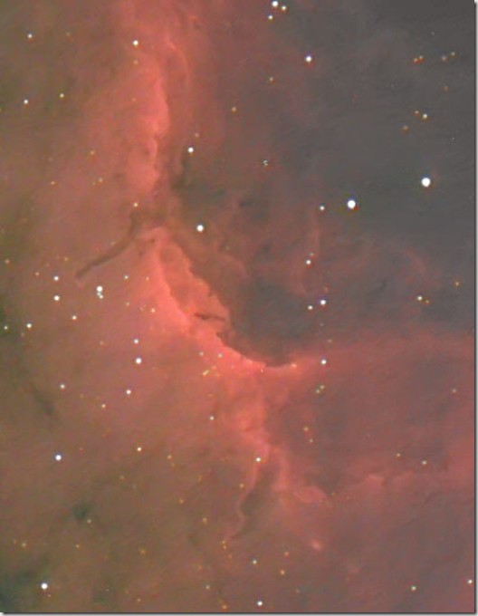 24 images de 200s en Halpha autoguidée par Guidemaster sur EQ6 + Toucam SC3