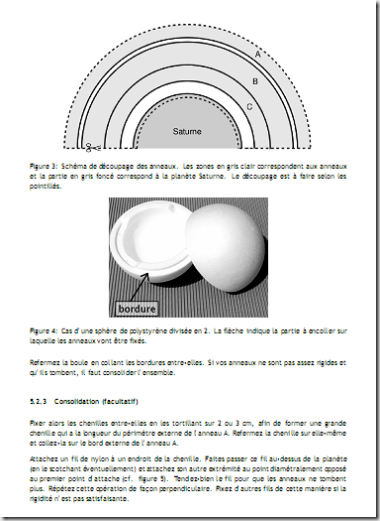 Plusieurs fiches de l’observatoire de Paris destinées à la réalisation d’une maquette de Saturne.