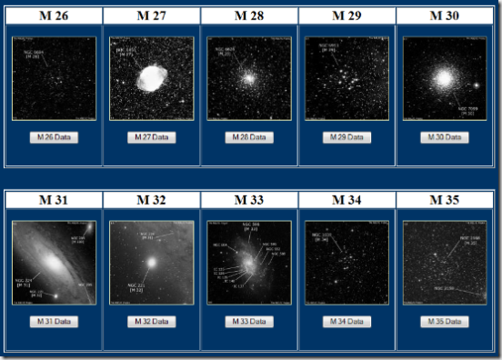 La première montre l’ensemble des objets Messier avec image et détails (en anglais dommage)