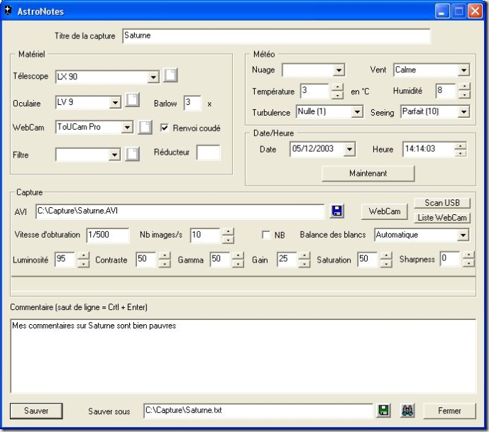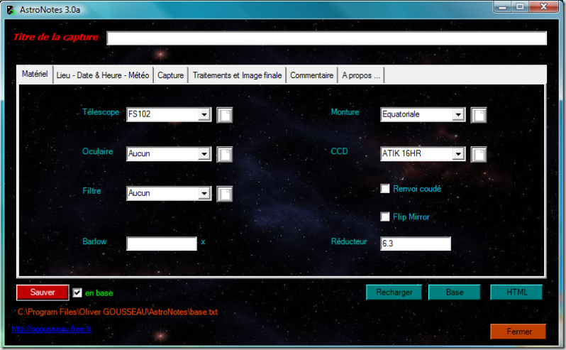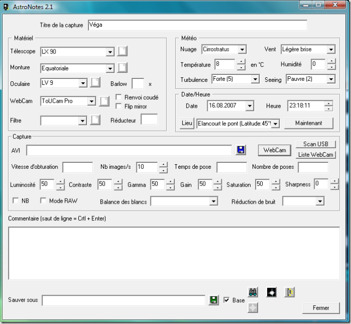 Astronotes est un petit programme d’aide à la prise de notes durant les longues soirées d’observation.