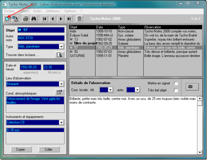 Le logiciel compile vos notes, photos, image ccd dans une base de données qui facilite la recherche, le trie et l’impression de vos rapports d’observation d’astronomie.