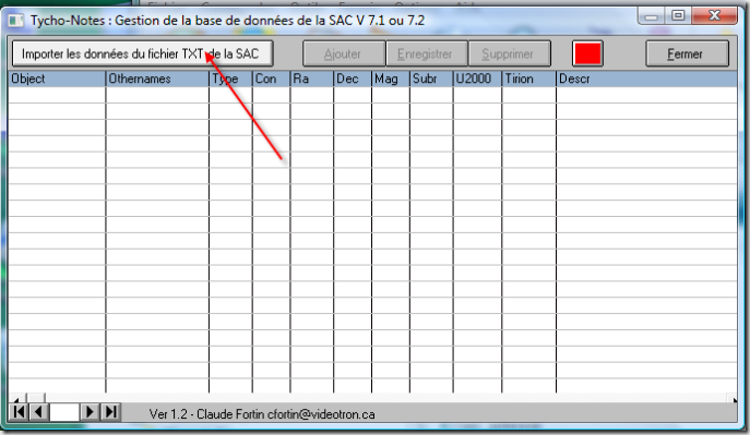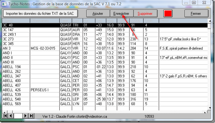 puis il faudra importer les 10593 objets du catalogue sac72.txt qui se trouve dans l’archive puis cliquer sur Enregistrer