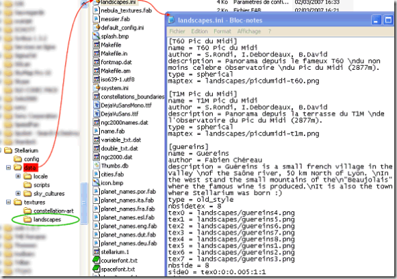 - Editer avec notepad le fichier lansdcape.ini situé dans le répertoire .\Stellarium\data\