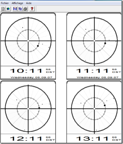 Le programme affiche alors les viseurs polaire en temps réel et il suffit de regarder l’écran ou d’imprimer une page pour comparer sur le terrain avec la vue dans le télescope.
