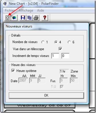 Le programme affiche alors les viseurs polaire en temps réel et il suffit de regarder l’écran ou d’imprimer une page pour comparer sur le terrain avec la vue dans le télescope.