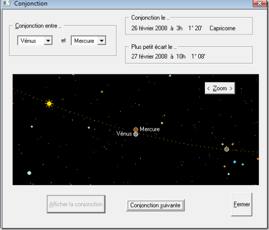 Des calculs sur une longue période pour les conjonctions entre deux planètes sont possibles.