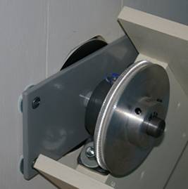 Un des axes DEC est équipé d’un frein (friction bois-acier) , l’autre axe reçoit une roue dentée en attente de la vis d’entraînement.
