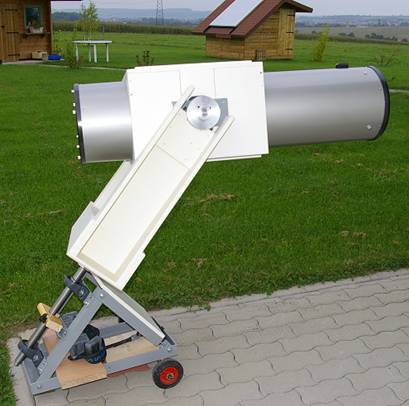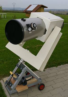 Voilà, la monture équatoriale à fourche est terminée. La prochaine étape est son montage dans l’observatoire (visible au second plan) et sa mise en station …
