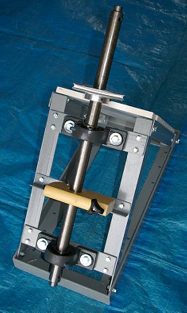 Le berceau est équipé de part et d’autre d’une platine en acier avec un axe de 20 mm de diamètre et 100 mm de longueur. Chaque axe reçoit son palier auto-centreur et le tout est posé sur la fourche.