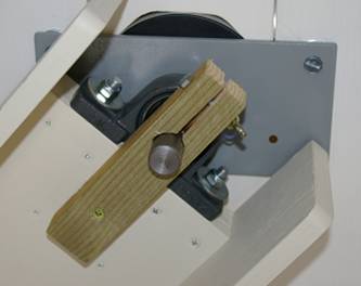 Un des axes DEC est équipé d’un frein (friction bois-acier) , l’autre axe reçoit une roue dentée en attente de la vis d’entraînement.