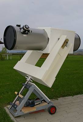 Voilà, la monture équatoriale à fourche est terminée. La prochaine étape est son montage dans l’observatoire (visible au second plan) et sa mise en station …