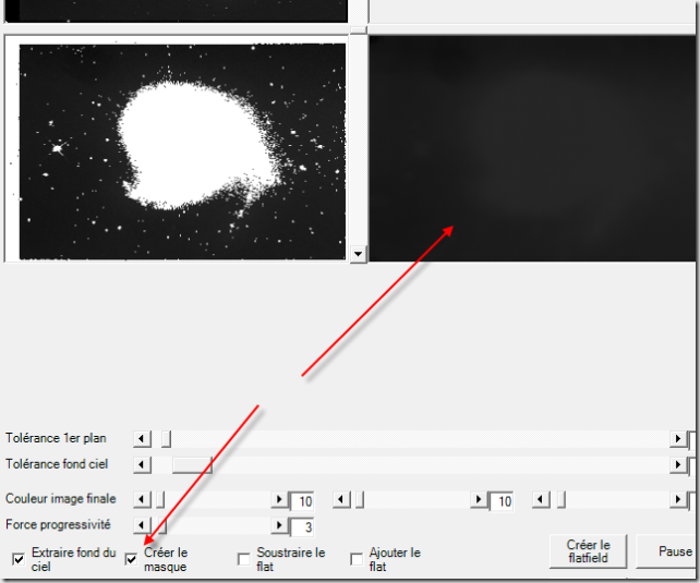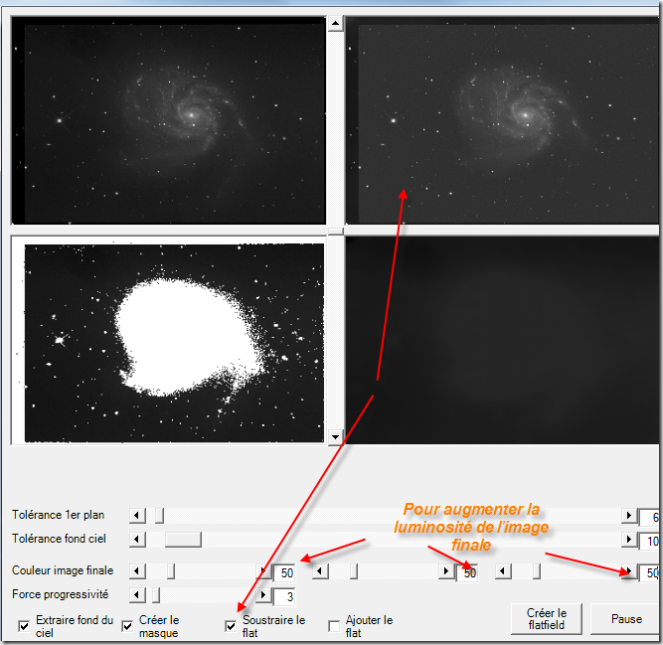 Cliquez sur le bouton Créer le flatfield.