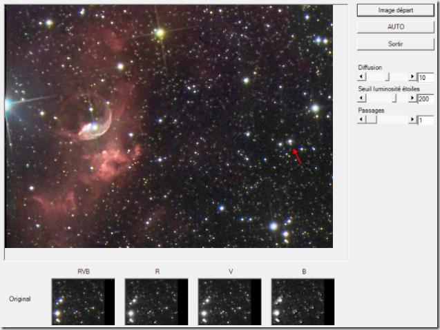 Il suffit de cliquer sur et autour des étoiles à corriger. La correction se fait en fonction des paramètres de la boîte de dialogue