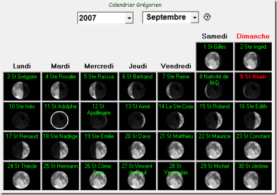 Voici son écran principal qui montre les phases de la Lune, les différentes fêtes, les Saints du jour etc…