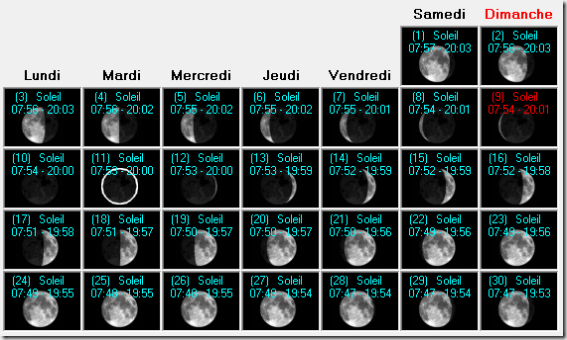 Un dernier programme écrit par O.Ravet qui donne une foule d’informations sur les calendriers.