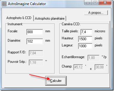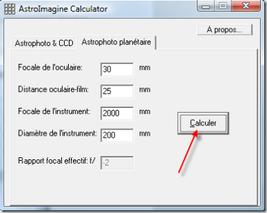 Une évolution de CCD Calc qui maintenant permet de calculer le rapport focal résultant pour l’astrophoto planétaire en plus de calculer le champ photographié.