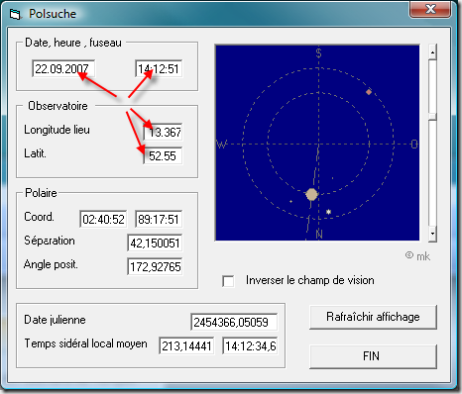 Quatre données sont à saisir: la date, l’heure, la longitude et la latitude du lieu d’obseravation.