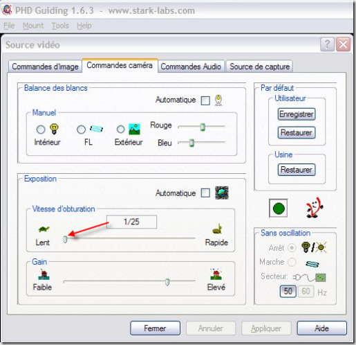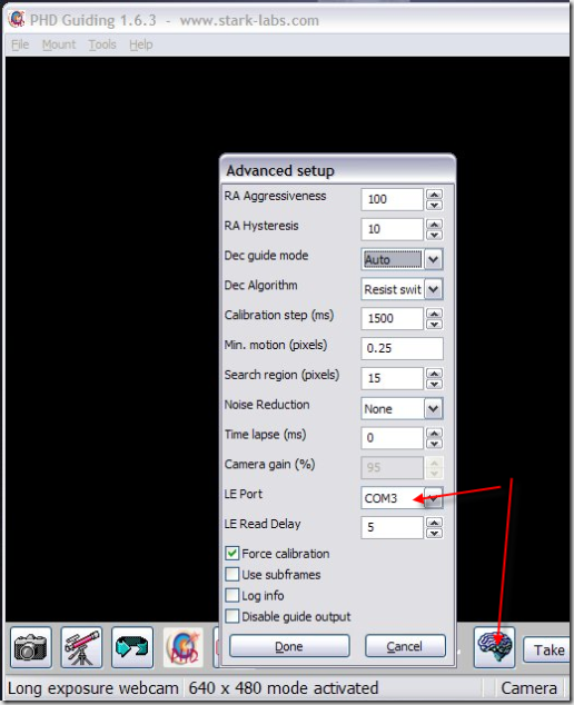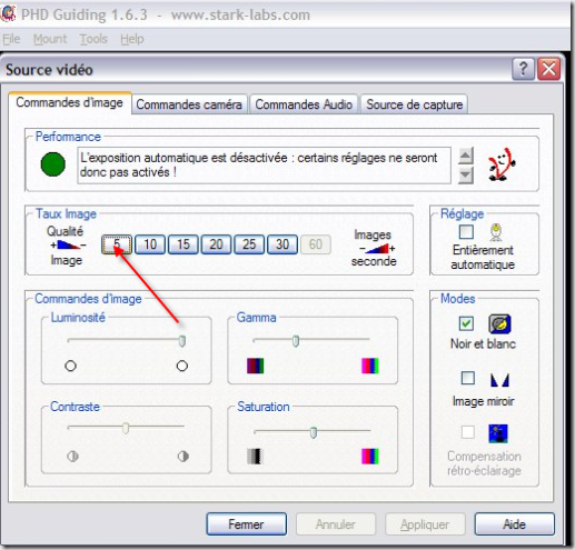 Dans mon cas, j’ai choisi caméra longue pose série/parallèle (j’ai une Toucam SC3)