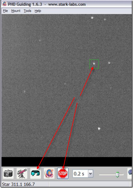 Cliquez alors sur l’étoile guide, un carré vert s’affichera.