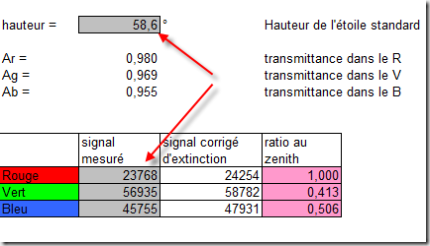 Il faudra d’abord déterminer le ratio RVB avec une étoile de type G2 au moyen de la feuille excel.