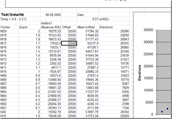 Si l’envie vous en dit, vous pourrez tester votre CCD et utiliser cette feuille pour vos propres valeurs.
