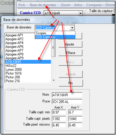 Si toutefois, vous ne trouvez pas votre bonheur dans les instruments et les télescopes, vous pourrez ajouter les vôtres (c’est ce que j’ai fait pour mon Atik et ma FS102).