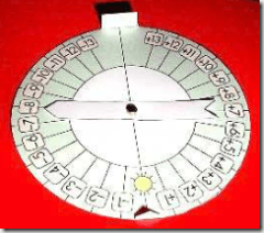 La grande flèche est placée sur le nombre de jours vous séparant de la nouvelle Lune. On vise le Soleil à l’aide de la petite flèche dont l’ombre doit se projeter sur le petit rectangle.