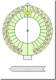 La grande flèche est placée sur le nombre de jours vous séparant de la nouvelle Lune. On vise le Soleil à l’aide de la petite flèche dont l’ombre doit se projeter sur le petit rectangle.