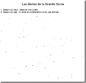Il s’agira juste dans un premier temps de reproduire la constellation avec son dessin « classique » puis ensuite d’imaginer une autre constellation avec les mêmes étoiles.