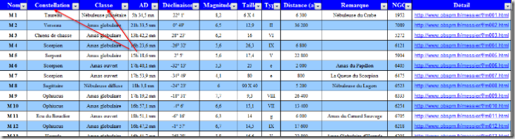 Merci pour le fichier Excel des objets des catalogues Messier, NGC, IC et divers.