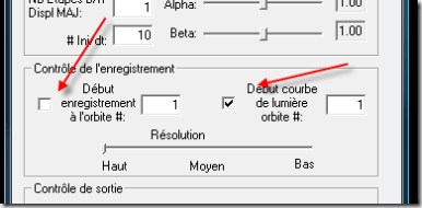 Vous pouvez enregistrer pendant la simulation le calcul et la courbe de lumière. Le logiciel demandera alors à saisir le nom du fichier de l’animation ou (et) celui de la courbe de lumière.