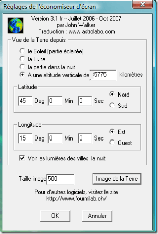 Un économiseur d’écran qui affiche la Terre soit vue du Soleil, de la Lune …