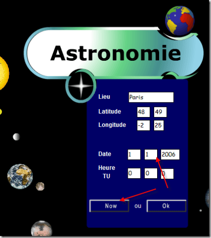 Il vous sera déjà demandé l’heure de calculs soit l’heure système, soit une heure définie.