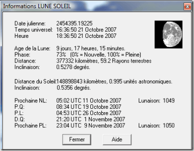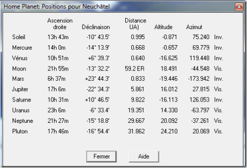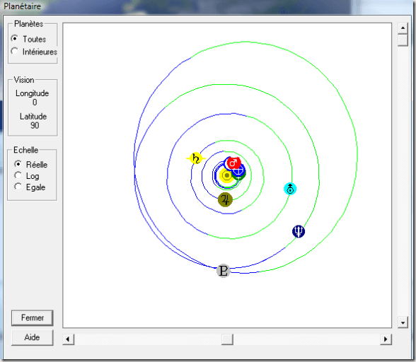 Le planétaire qui permet de changer le point de vue d’observation et qui est redimensionnable.